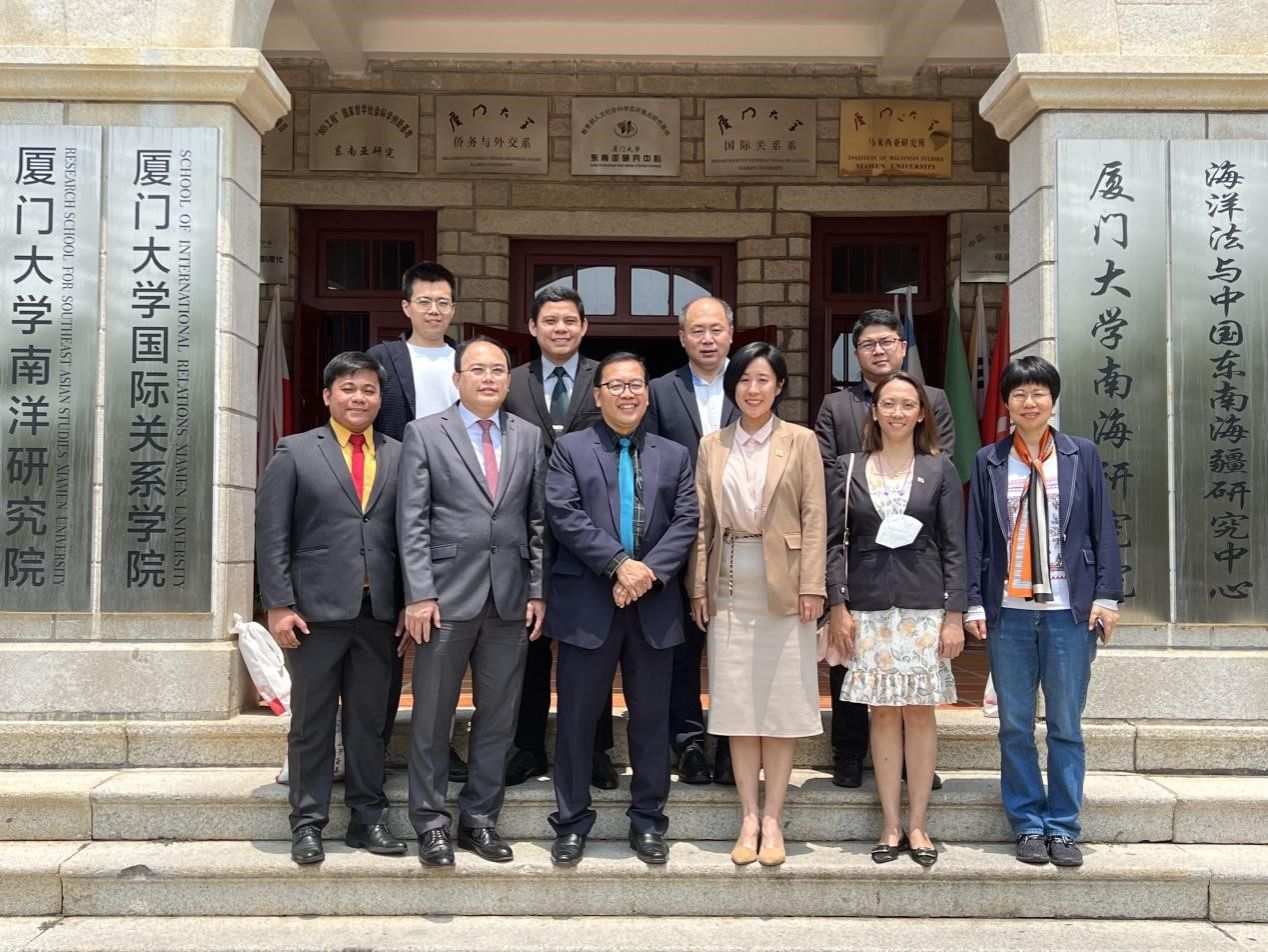 2023年4月22日,菲律宾新纪元大学国际关系学院院长卡洛斯·塔本达(Carlos Tabunda Jr)、法务及对外事务副院长阿蒂·杰拉尔德·维拉纽瓦(Atty Gerald Villanueva)、尼尔·布赖恩·塔雷(Neil Bryan Tarray)、马克·安东尼·马丁(Mark Anthony Martin)及菲律宾总统中国事务特使团朱迪梅尔·艾扎·赫莫萨(Judimel Aiza Hermosa)、许少镗、许智旭一行来访我院。学院副院长张淼、副教授沈惠芬、助理教授黄飞、助理教授苏世天等参加座谈。