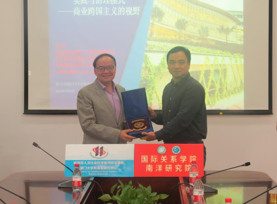 2023年5月12日下午,南强学术讲座第1172讲在厦门大学南安楼301-3会议室举行。本次讲座特邀刘宏教授为主讲人,主题是“新加坡华商企业的区域化实践与治理模式——商业跨国主义的视野”。刘宏教授现任新加坡南洋理工大学协理副校长、社会科学学院陈六使讲席教授、南洋公共管理研究生院院长(研究与培训)。厦门大学国际关系学院/南洋研究院冯立军教授为主持人。