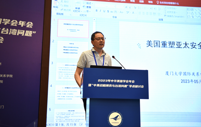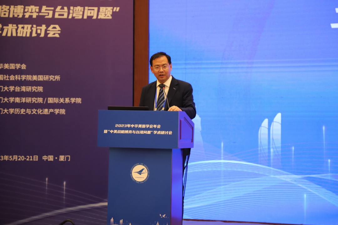 为把握新时代中美关系发展正确方向、助力营造中华民族伟大复兴的外部安全环境,5月20日,2023年中华美国学会年会暨“中美战略博弈与台湾问题”学术研讨会在厦门举行。本次研讨会由中华美国学会主办,中国社会科学院美国研究所、厦门大学台湾研究院、厦门大学南洋研究院/国际关系学院、厦门大学历史与文化遗产学院联合承办。来自北京大学、清华大学、中国人民大学、中国国际问题研究院等数十所高校及研究机构的近200位专家学者与会,围绕当前中美关系与两岸关系展开深入研讨。
