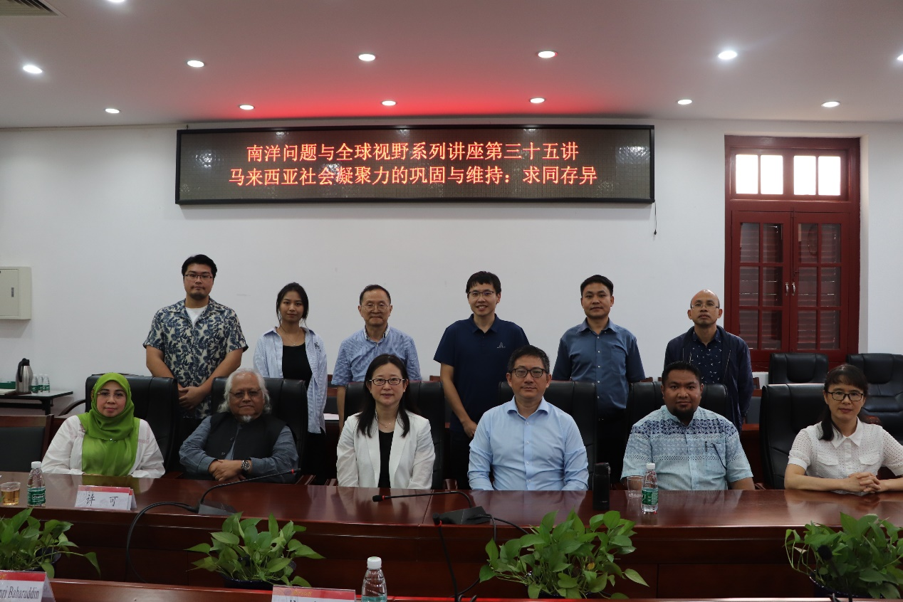 2023年9月21日下午,南洋问题与全球视野系列讲座第三十五讲在厦门大学南安楼301-3会议室举行,本次讲座主题为“马来西亚社会凝聚力的巩固与维持:求同存异”。主讲人沙姆苏·阿姆里·巴哈努丁(Shamsul Amri Baharuddin)为马来西亚国立大学特聘教授、族群研究所创始人,马来西亚高等教育部任命的文科领域五位杰出教授之一,曾任马来西亚国家团结部顾问,兼任马来西亚联合国教科文组织名誉主席。其重点研究领域涵盖马来西亚政治经济、马来文化传播、族群身份、穆斯林现代化等,代表作为《从英国殖民到土地之子的统治:马来半岛的地方政治与农村发展》。厦门大学国际关系学院/南洋研究院许可副教授担任主持人,王昭晖副教授为与谈人。