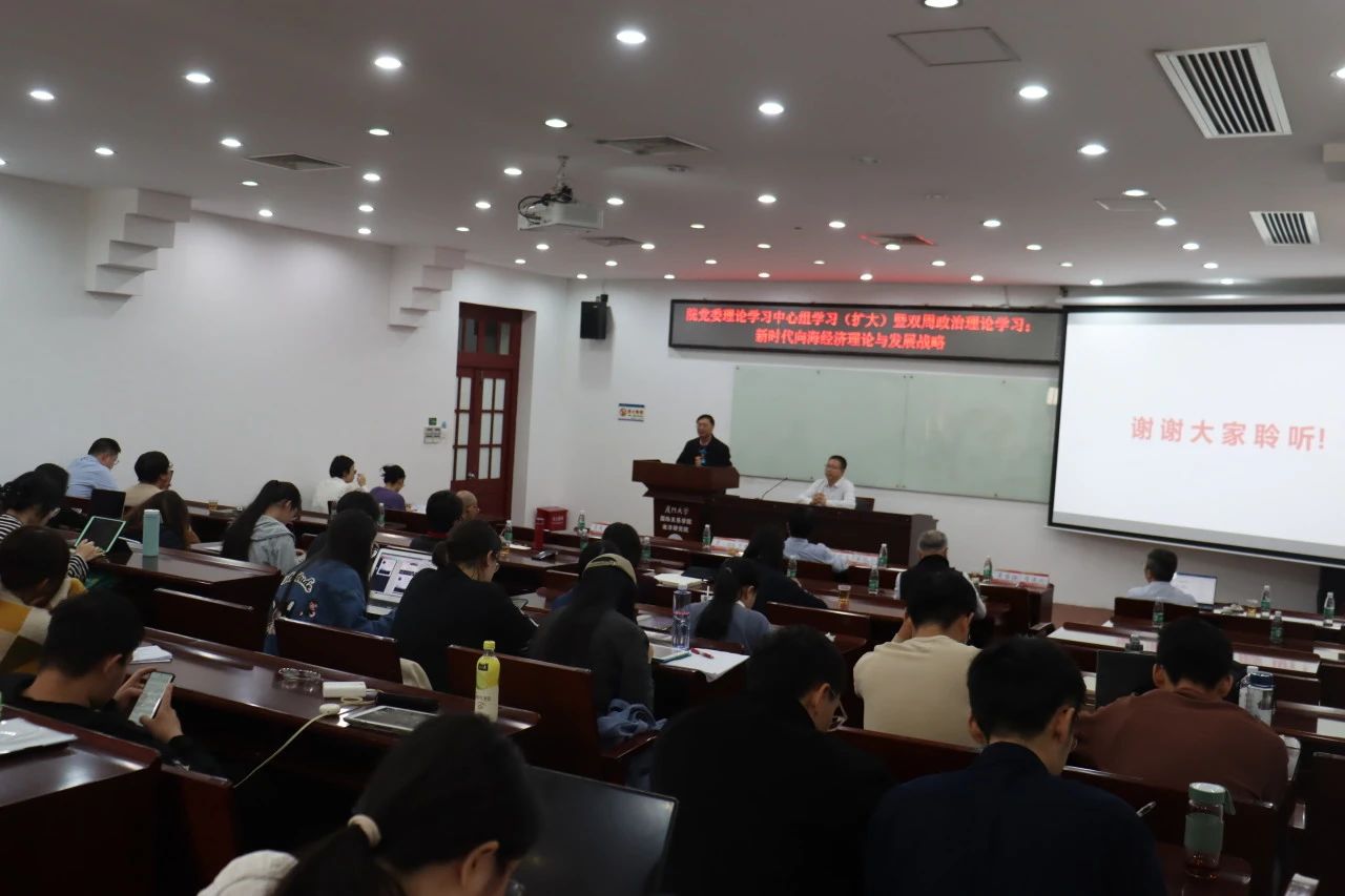 2023年11月16日上午,南强学术讲座第1208讲暨国际关系学院/南洋研究院党委理论学习中心组(扩大)专题学习会在厦门大学南安楼101会议室举行。本次讲座特邀广西财经学院校长夏飞为主讲人,主题是“新时代向海经济理论与发展战略”。夏飞校长现任广西财经学院二级教授、博士生导师,是国家万人计划哲学社会科学领军人才、全国文化名家暨四个一批人才、新世纪百千万人才工程国家级人选、国务院政府特殊津贴专家、教育部新世纪优秀人才支持计划人选、广西优秀专家、广西首批文化名家暨四个一批人才,同时也是国家社会科学基金学科组评审专家、教育部本科教学合格评估和审核评估专家。厦门大学国际关系学院/南洋研究院党委书记邱旺土担任主持人,厦门大学国际关系学院/南洋研究院吴崇伯教授担任与谈人。