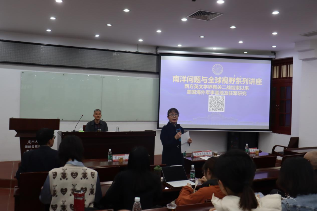 2023年12月4日下午,南洋问题与全球视野第四十一讲“西方英文学界有关二战结束以来美国海外军事基地及驻军研究”在厦门大学南安楼101会议室举行。本次讲座特邀夏亚峰教授为主讲人。夏亚峰教授现任美国纽约长岛大学东亚史和外交史资深教授、华东师范大学社会主义历史与文献研究院研究员、华东师范大学-威尔逊中心冷战研究工作室主任。主要从事冷战史、美国对外关系史、中华人民共和国外交史研究。他曾先后担任美国威尔逊国际学者中心高级研究员(2011-2012)和公共政策学(2016)。厦门大学国际关系学院/南洋研究院沈燕清教授担任主持人。
