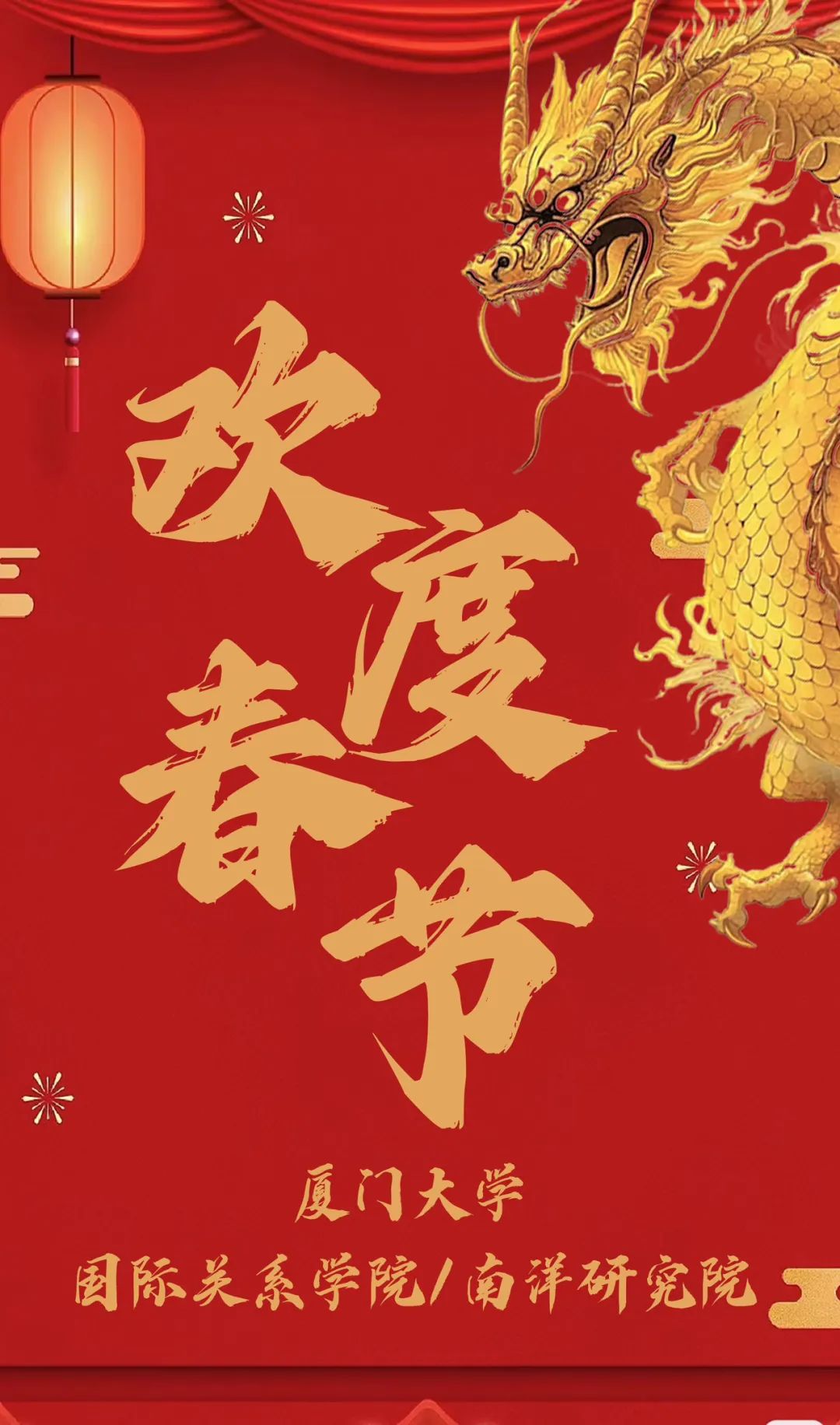 星奔川骛,岁聿云暮。值此金龙起舞迎新春之际,我们谨代表厦门大学国际关系学院/南洋研究院党委、行政,向全体师生员工、海内外院友和社会各界朋友,致以最诚挚的问候,并表示最美好的祝福!