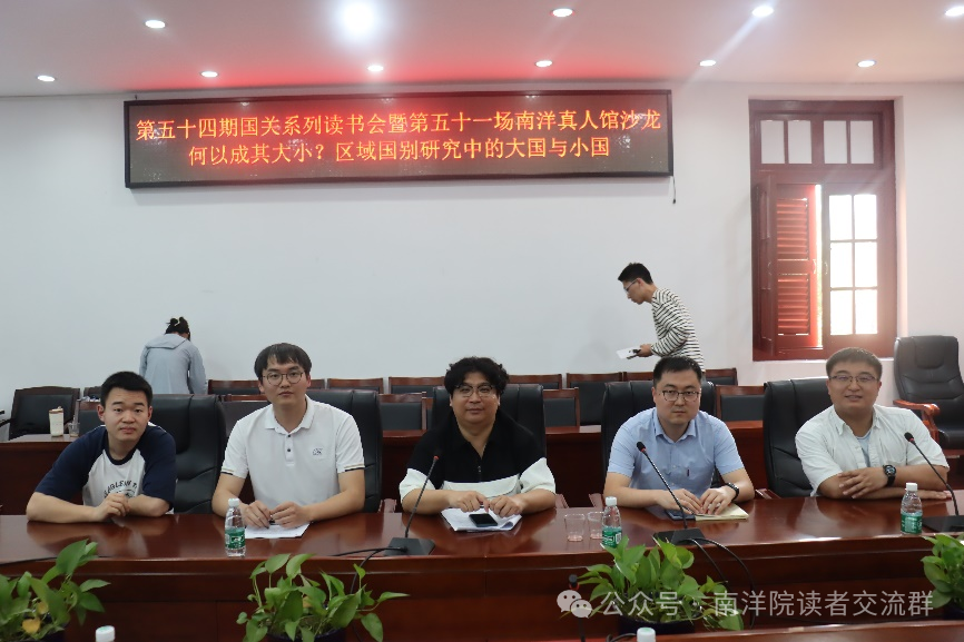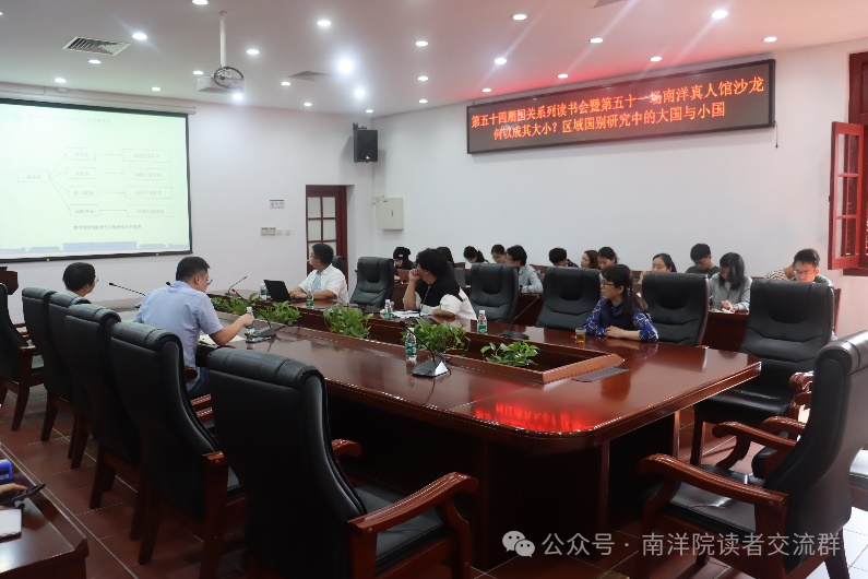 3月26日下午,第五十四期国关系列读书会暨第五十一场南洋真人馆沙龙在厦门大学南安楼301-3会议室举行。本期读书会的主题为“何以成其大小?区域国别研究中的大国与小国”,主讲人为厦门大学世界史流动站博士后、厦门大学国际关系学院/南洋研究院特任助理研究员杨飞与尹楠楠。主持人为厦门大学国际关系学院/南洋研究院特任助理研究员李晨。