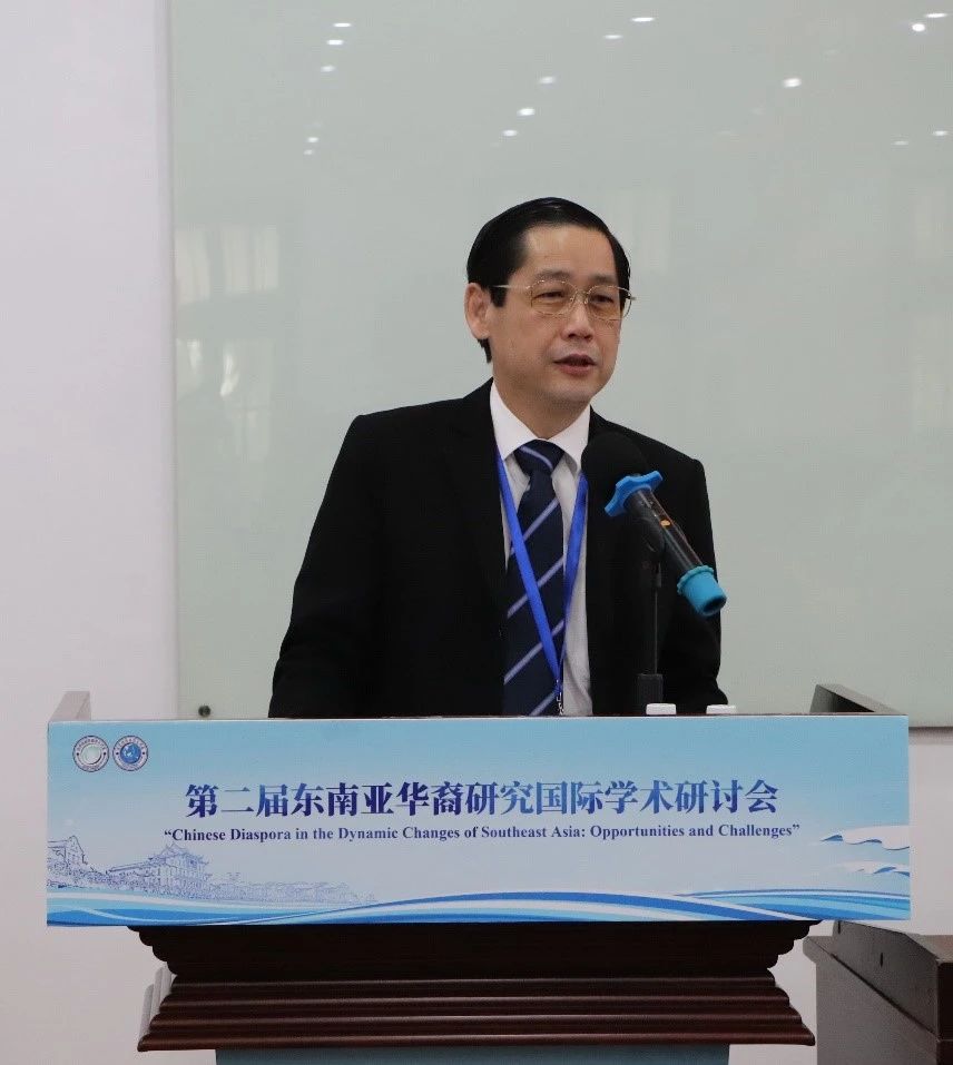 厦门大学国际关系学院/南洋研究院院长高艳杰教授代表学院致欢迎辞,他表示,厦门大学国际关系学院/南洋研究院因侨而立、由侨而兴,在华侨华人研究方面拥有丰富的历史底蕴和学术传统。新时代给华侨华人社群带来了一系列的机遇和挑战,高院长表达了对本次会议的期待,他希望通过这场开放、多元、深入的思想交流为华侨华人在新时代中的发展出谋划策,为华侨华人更好地融入东南亚当地社会作出积极贡献。