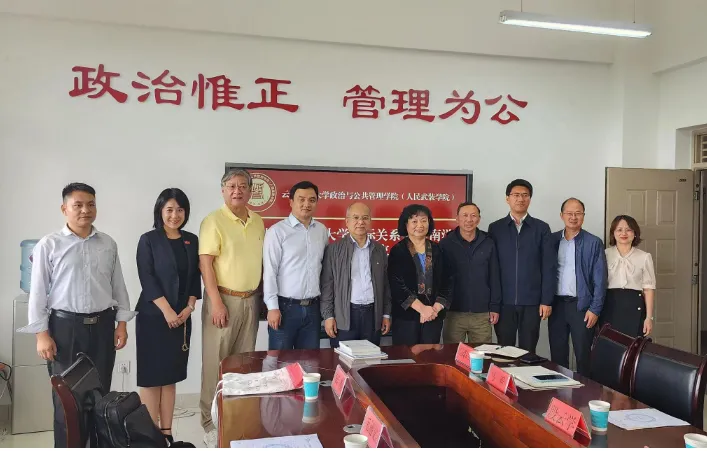 7月4日上午,调研组一行参访云南民族大学政治与公共管理学院。云南民族大学原党委副书记、校长那金华,校党委委员、副校长邹永松,校党委委员、副校长段云学,政治与公共管理学院党委副书记、院长马忻等领导班子成员,南亚东南亚语言文化学院副院长莫源源等参加座谈和交流。双方就基础研究、对策研究、学科建设、人才培养、人才招聘、毕业生就业、小语种培训等方面进行全方位的交流和探讨。