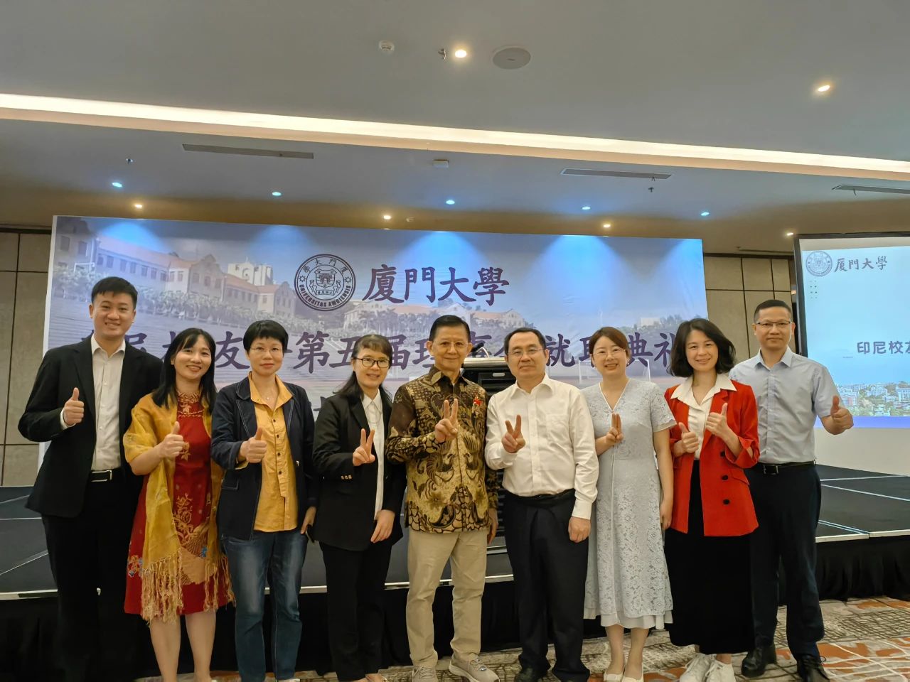 8月4日,调研团受邀参加厦门大学第五届印尼校友会第五届理事会就职典礼,与在印尼的厦大校友欢聚一堂,共叙情缘。这为2025年即将在厦门大学举行的庆祝中印(尼)建交75周年系列活动奠定了良好的基础。