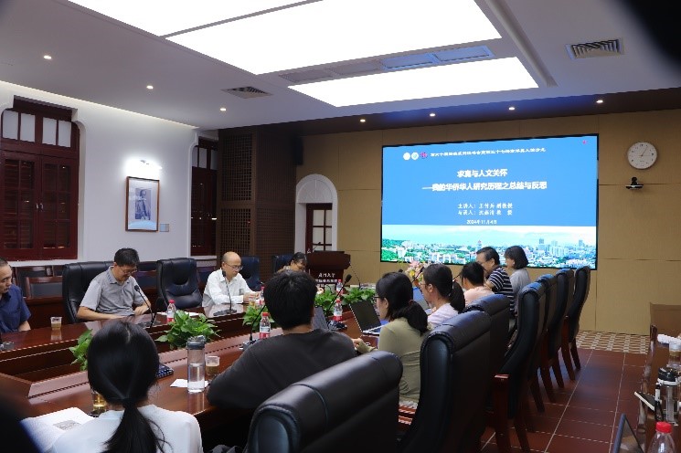 2024年11月4日下午,深秋暖阳,厦门大学南安楼301-3会议室鲜花灿烂,来自马六甲的白咖啡浓香沁人。第六十期国关系列读书会暨第五十七场南洋真人馆沙龙由厦门大学国际关系学院/南洋研究院副教授王付兵担任主讲人,副院长沈燕清教授担任与谈人,副教授王望波主持,活动的主题为“求真与人文关怀——我的华侨华人研究历程之总结与反思”。