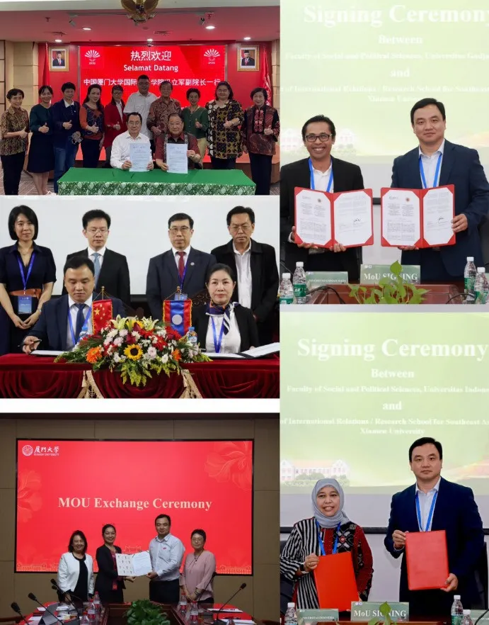 2024年,学院与马来亚大学亚欧学院、印度尼西亚大学社会与政治科学学院、加查马达大学社会与政治科学学院、华裔总会、菲律宾大学迪利曼分校、老挝国立大学社会科学学院六个东南亚国家研究机构签订合作协议,在学术合作、人才培养、科研项目等方面开展广泛合作,实现了资源共享、优势互补,为学院的教学科研和学科建设注入了新的活力,提升了学院在国际学术界的影响力和话语权。