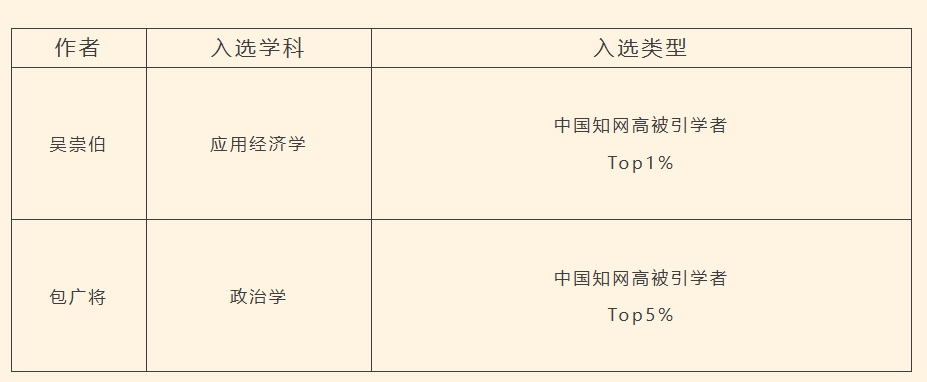 近日,中国知网下属的中国科学文献计量评价研究中心(简称“知网评价中心”)公布了2024年中国知网高被引学者预发布名单。我院教授吴崇伯入选中国知网高被引学者Top1%,副教授包广将入选中国知网高被引学者Top5%。