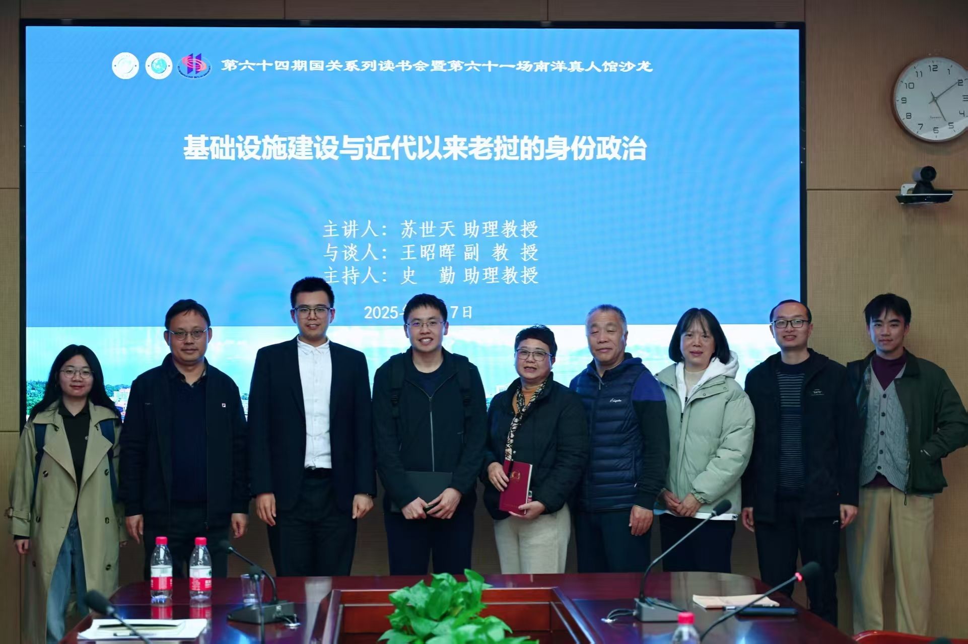 卉木萋萋临春分,鹭海滟滟醉书香。2025年3月17日下午,第六十四期国关系列读书会暨第六十一场南洋真人馆沙龙在厦门大学南安楼301-3会议室举行,主题为“基础设施建设与近代以来老挝的身份政治”。厦门大学国际关系学院/南洋研究院助理教授苏世天担任主讲人,王昭晖副教授担任与谈人。厦门大学马克思主义学院助理教授史勤主持本场讲座,他向与会师生介绍了苏世天和王昭晖老师的履历背景、主要研究方向和研究成果等。