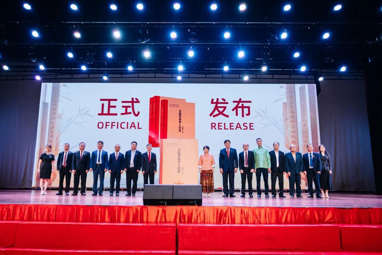 2025年10月2日晚,厦门大学南洋研究院代表团参加了老挝中华总商会成立十周年庆典,揭牌成立“老挝华侨华人研究中心”(以下简称“中心”),发布第一本老挝华侨华人历史专著——《老挝华侨华人研究史话》。莅临现场的嘉宾有老挝党中央政治局委员、建国阵线主席辛拉冯,老挝党中央政治局委员、老挝政府副总理吉乔,万象市委书记、市长阿沙庞通·西潘敦及中国驻老挝大使馆方虹大使。