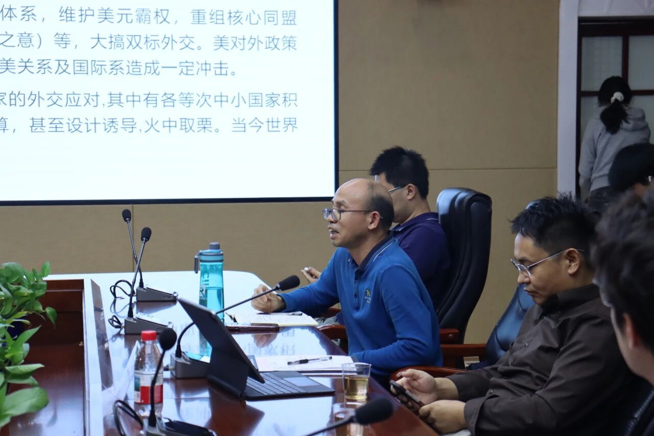随后,张教授从全球视角分析了“国际格局向‘两超多极’演变”的趋势。他指出,美国霸权体系内部矛盾加剧,而新兴国家和“全球南方”的整体上升势头不减。中国作为最大发展中国家,在推动和平发展、经济复苏和全球治理改革中发挥了关键作用。