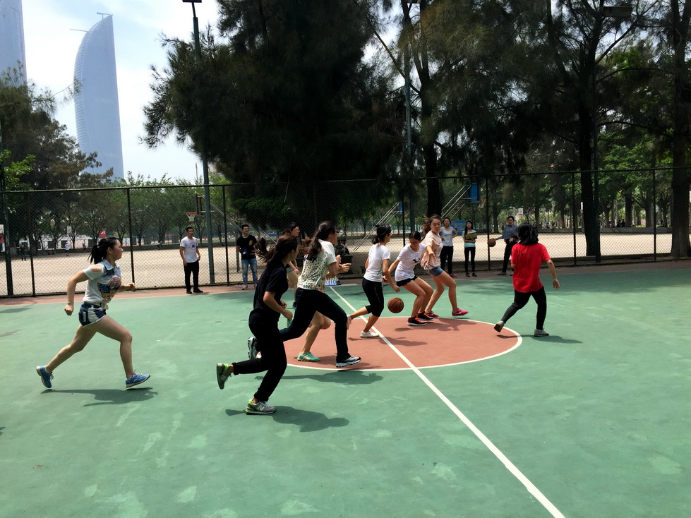2015年5月14日中午12:40,国关女篮在演武篮球场进行了一场内部比赛,对阵双方是大三队和大一大二联队。这场比赛并不是一场普通的训练赛或是教学比赛,而是国关女篮2012级队员们的告别之战。对于2012级的队员们来说,目前已经是大三下学期,是大学生活的关键时期,面临诸多压力的她们不得不暂时放下相伴两年有余的球队。最终,大三队以15:6的比分战胜了大一大二联队,为自己大学的篮球生涯画上了圆满的句号。