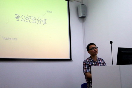 首先是李波学长,他就考公务员给出了一些建议和想法。他建议公务员笔试仍然要按照套路按照结构来写,切忌在文章中渲染太多的个人情怀,同时也要注意考试时间的安排。接着是肖轺芳学姐,她现在拿到的是招商银行股份有限公司深圳分行的offer,对于找工作、就业,学姐说永远不要忽视简历的重要性,因为它可以说是人的另一张脸。要有一张得体的证件照,简历一定要简单明了、突出重点。而且要选择发展空间大的企业,招商银行是她比较推荐的一个选择。然后方成学长,推荐了一些求职渠道,包括应届生求职网、中华英才网等。他说,一方面实习要找大的企业,来丰富自己的简历,但是另一方面,越小的企业学到的越多。对于面试时常常会遇到无领导小组讨论,他告诉大家要明确目的:大家在一起是为了解决问题,不是单独展示自己有多优秀,因此每个人要找准定位,不要做不讲话的,也不要做话最多的,做好份内的。最后是徐斯雅学姐,她给的最大经验是:机会都是留给有准备的人的。有了好的准备,还要做出最适合自己的选择。最终,她选择了创业。现在的她,是成都火山人文化传播公司的一员。对于创业,她放在第一位强调的是一起合作的伙伴,她建议要跟志同道合的人一起创业。