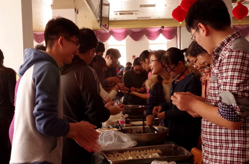 下午2时30分,冬至包饺子活动正式开始。老师与同学们都热情高涨,齐心协作。经验丰富的老师们纷纷示范包饺子技巧,而同学们一边学习,一边包出充满地方特色的饺子,尼日利亚籍博士生John Moses Maikomo也兴致勃勃向中国学生学习包饺子。还有勤劳的同学及时将饺子送到厨房下锅煮好,大家配合十分默契。