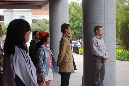 2014年11月14日下午4点半,国际关系学院党委副书记黄俊清与团委书记沈丽秀带领部分学生干部前来观看学院啦啦操队排练成果,并为队员们送上鼓励与慰问。