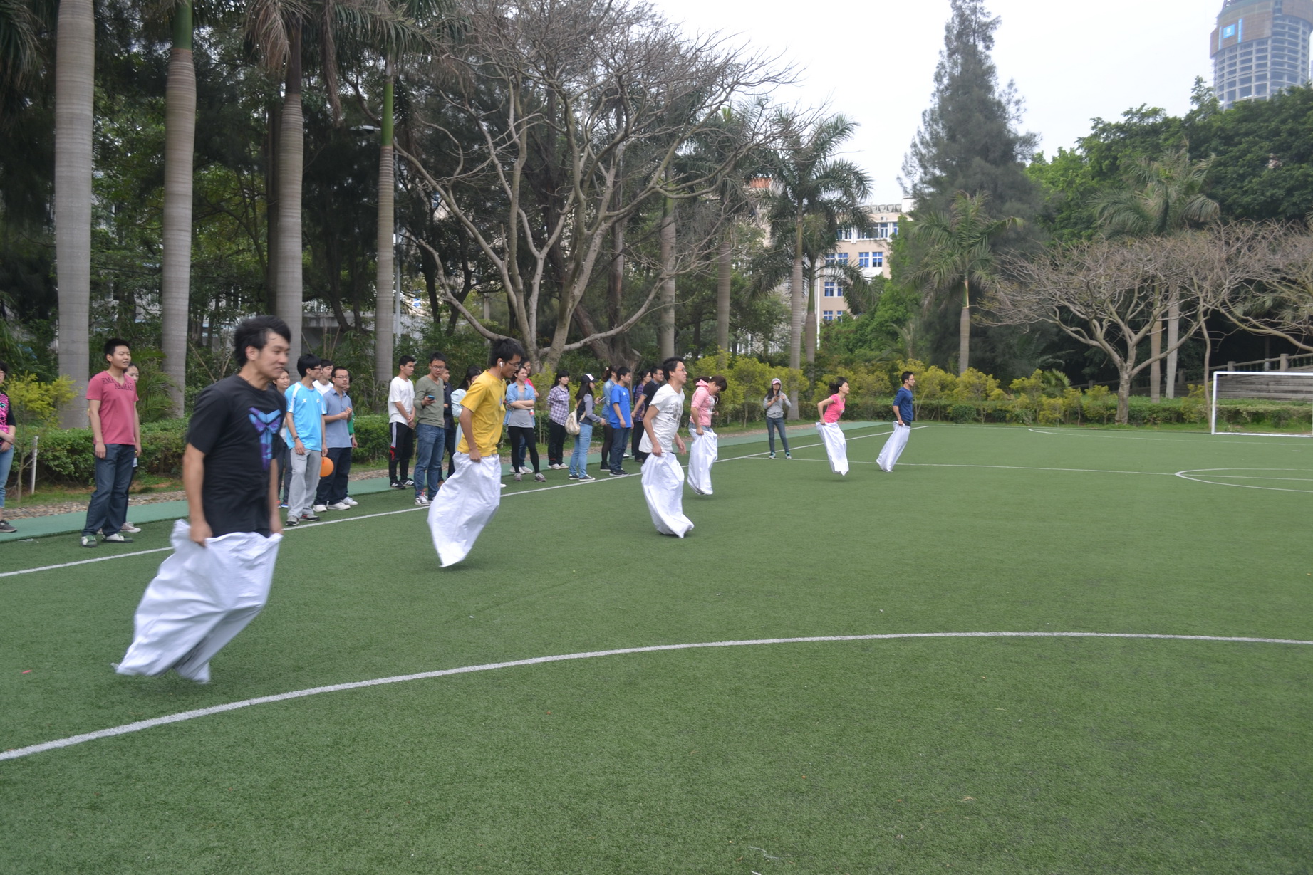“几树半天红似染,居人云是木棉花。”三月末的厦门,又到了木棉花开的季节。在这个阳光明媚,繁花似锦的季节里,为了丰富同学们的课余生活、增进不同院系同学间的沟通与了解﹑培养同学们的团结协作精神,在厦门大学“六院”(人文学院、外文学院、法学院、物理与机电工程学院、建筑与土木工程学院、国际关系学院/南洋研究院)研究生会的组织下,2014年3月30日上午8::30厦门大学“六院”趣味运动会在厦门大学本部上弦场准时举行。