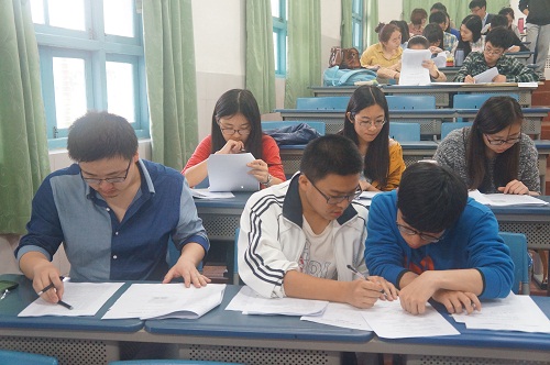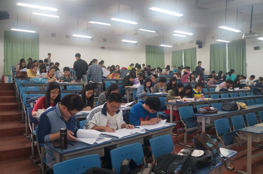 本场比赛采取开卷考试的形式,各参赛小组的三名成员需要在100分钟内合作完成一份试卷,内容包括国际政治,外交礼仪,各国历史,地理等。赛前,各参赛者已认真学习了由大赛组委会提供的题库,并做好了充分的准备。12时30分,监考官宣布考试规则后发放考卷,考试正式开始。考试过程中,31组参赛者利用自己所掌握的知识以及小组成员的共同讨论合作,圆满地完成了答卷。下午2时10分考试结束,监考官收集试卷上交组委会等待评分。