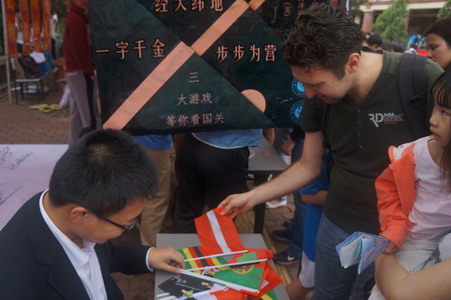 在设点摆摊时,国际关系学院的同学们用“一字千金”、“步步为营”、“经纬天地”等游戏吸引了许多学生和游客驻足。参与者通过辨识世界地图、对国际政治的专业名词“你比我猜”、辨识世界各国的国旗等有趣的方式对国际关系学院的专业知识有了一个更深更广的了解,也得到了精心准备的礼品。参与摆摊设点工作的国际关系学生,在一整天的时间里认真负责、积极主动、耐心热情、任劳任怨,为国际关系学院树立了良好的形象。国际关系学院/南洋研究院院长庄国土来到了学院校园文化节展示地点时,对同学们的工作给予好评。
