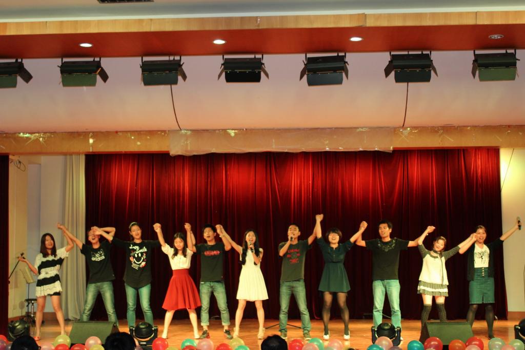 结业典礼告一段落,精彩演出华丽登场。结业联欢晚会在热闹的开场舞中拉开序幕,潇洒的舞姿、动感的音乐瞬间将全场气氛带动起来。在大家还意犹未尽地为开场舞拍掌欢呼之时,第二组的沈冬欢同学又以一首原创歌曲《最初的信仰》震撼全场,强烈的节奏、励志的歌词给大家带来满满的正能量。随后还有原创小品《非诚勿扰》、《来自干训班的我们》等令全场捧腹大笑,其中男生反串角色更是令人印象深刻;干训班第五组成员带来的舞蹈串烧《舞所不在》结合了现代舞、民族舞、幼儿广播体操等多种舞蹈形式,让人耳目一新;部分小组全体成员出动共同为大家演绎动人歌曲,充满了爱意与不舍;各个小组也派出他们的“金嗓子”为大家倾情献唱......整场演出气氛热烈,欢声笑语在会场内经久不息。晚会结束后,全体干训班学员共同合照,为本次干部培训班的最后一课画上了圆满的句号。