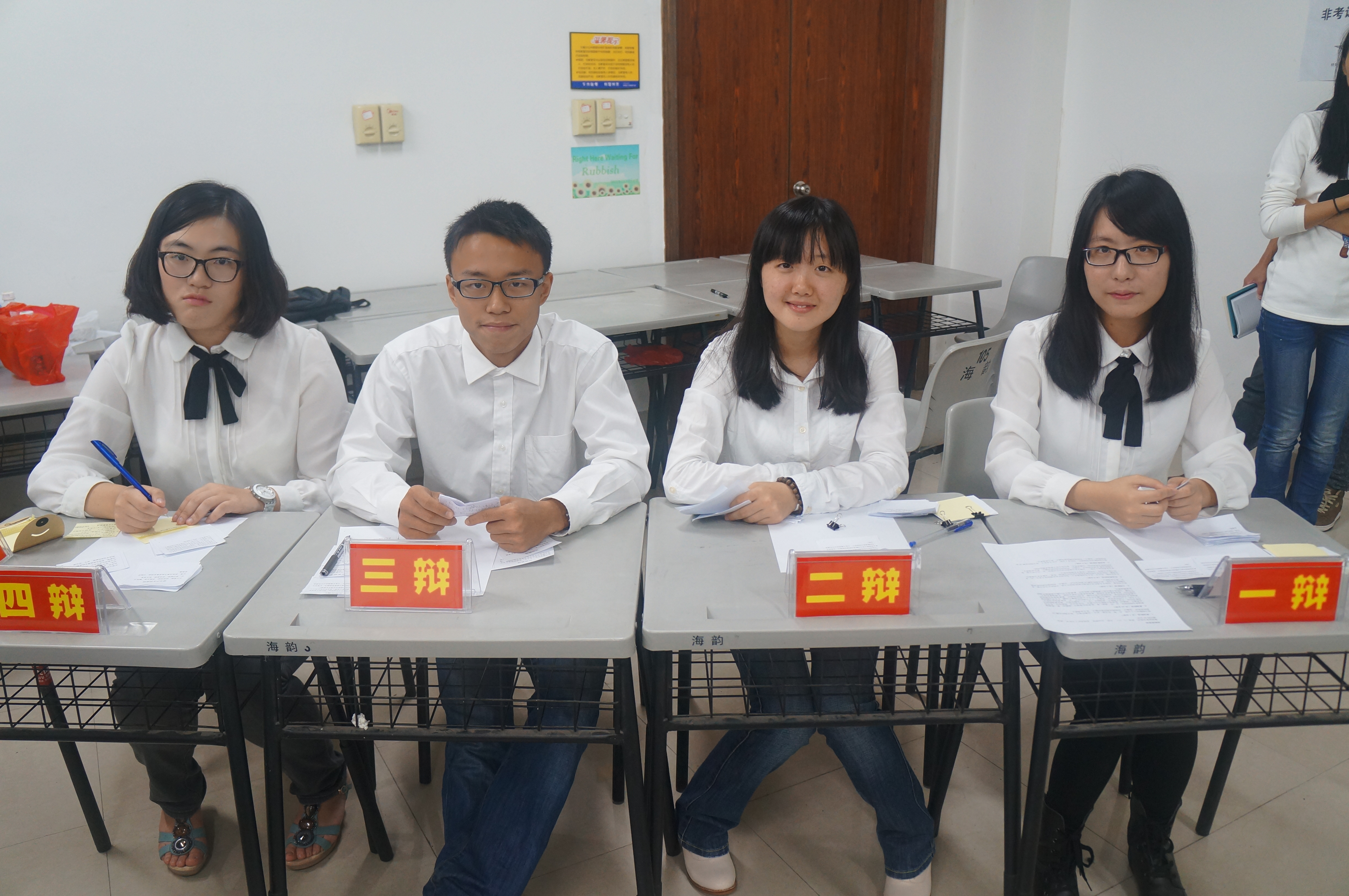 开赛前双方的辩队都提前到达了指定地点,为即将开始的辩论展开最后的准备。下午15:00辩赛正式开始。主席宣布完比赛规则后,双方一辩开始立论陈词。来自国关的一辩郭丽超用完整清晰的思路、从容淡定的语调向大家从三个方面证明了正方观点——谣言止于智者。医学院的一辩陈逸却用另一种风格,自信满满、铿锵有力地向大家强调了他们的立场——谣言止于法律。辩论进入质询环节,正方二三辩与反方二三辩进行了精彩的相互质询。质询过程中,正方二辩吴玉琦字字珠玑,质询有力。反方三辩落落大方、表达流畅。接下来,最精彩的自由辩环节开始,双方辩手你来我往、互不示弱,大有用唇枪舌剑大战三百回合之势。特别是正方三辩黄冠华和反方一辩陈逸以精彩的应答表现突出。更值得一提的是,在激烈辩论的同时,双方也注意到了礼节,很好地继承了厦大的儒辩传统。最后,由正反双方的四辩作出结辩,反方四辩首先很好地总结了他们在整场辩论中的辩点,而正方四辩金超逸更是以缜密的思维和流利的表达很好的对反方结辩中的观点作出了总结性的反驳,也对正方辩题做了最后的精彩总结。经过10多分钟的商讨,三位评委最终将晋级四强的权利给了国关,而医学院优秀的一辩也拿到了最佳辩手的称号。