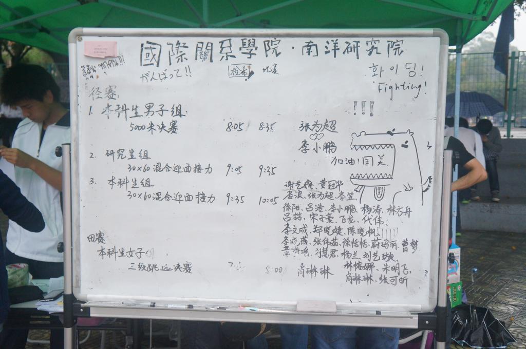 虽然是最后半天,白板上还是写满了大家的名字,加油哦~海外生也来帮忙准备号码牌,好认真啊!