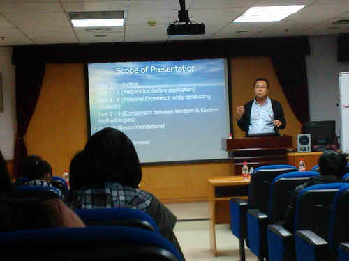 2013年3月29日晚上7点,我院“南洋博士论坛”第二期精彩开讲,2010级博士生龚达伟(David Dexter Kong)在颂恩楼(嘉庚三)514会议室为我院师生做了一场关于学术研究和写作的讲座,吸引了院内外众多学生,我院副院长施雪琴教授也莅临现场与同学们进行了交流。