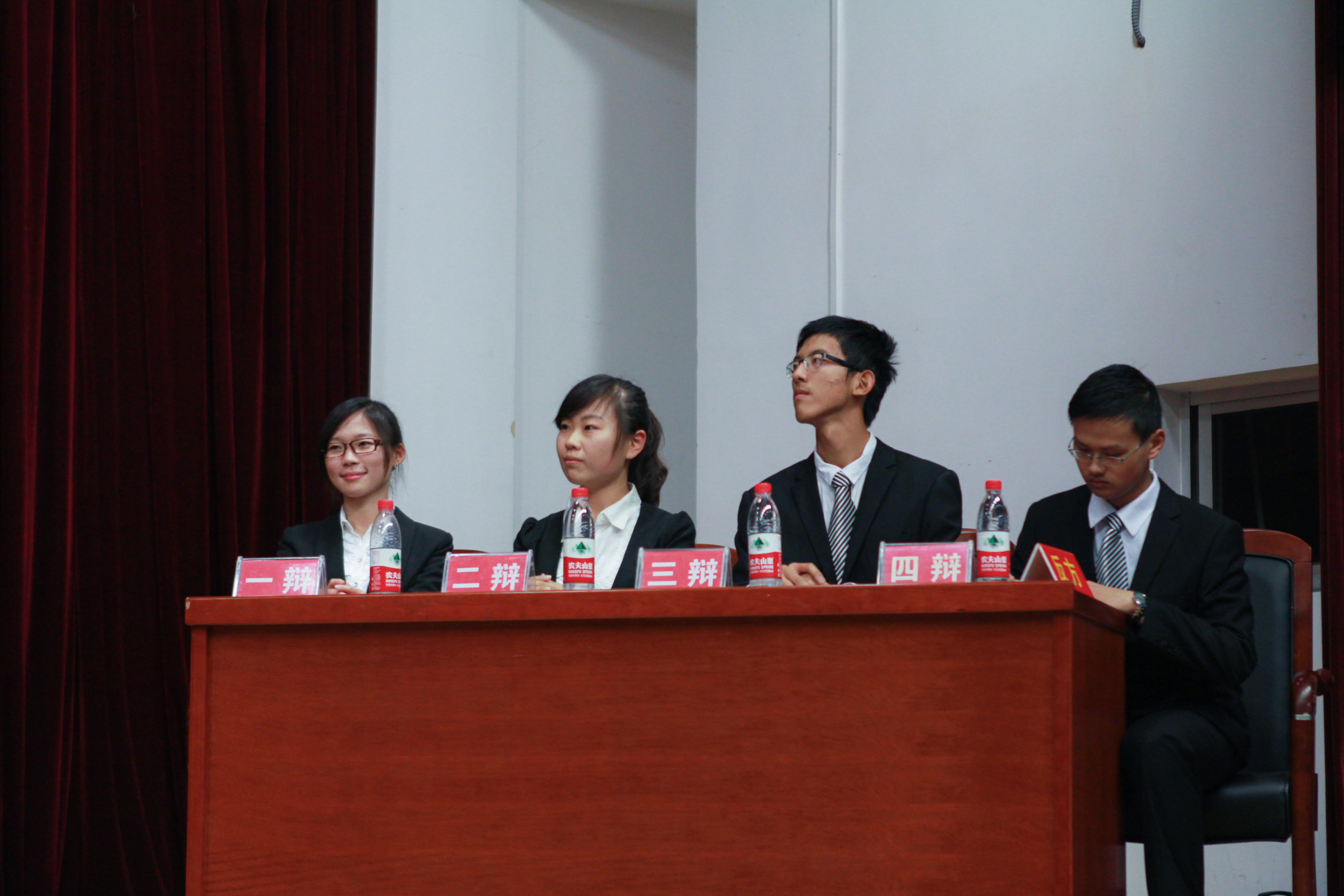 紧随其后的就是新生辩论赛决赛,本次决赛采用海峡赛制。代表我院出战的四名辩手分别是党培、马嘉欣、吉润一聃和陈振胤。在立论、攻辩质询、自由辩论以及结辩等环节中,正反双方唇枪舌剑,妙语连珠,引起了观众的阵阵掌声与喝彩。在最为紧张激烈的自由辩论环节中,正方主攻“虚假信息”,认为对于微博空间的信息必须有一个批判扬弃的过程,反方主攻“语言暴力”,认为批判中的某些负面作用伤害观点的多元化。双方都试图在各自的主攻点上撕开对方的防线,但同时对于对方的进攻采取回避的态度。双方引证了姚晨、郭美美、范跑跑等热点事件,形成僵持之局,着实让台下观众充分的感受到了辩论独特的魅力。
