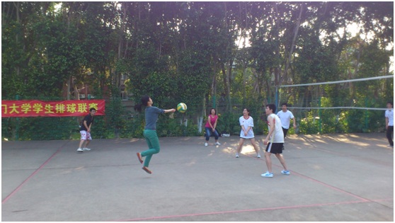5月23日下午四点,一场我院师生的排球技巧交流活动在本部东苑排球场按时举行。活动开始之后,2011级各位硕士研究生虚心地向各位老师请教排球运动的技巧,老师们则热情地向同学们传授。在经过一段时间的交流之后,同学们初步掌握了排球运动的基本规则。