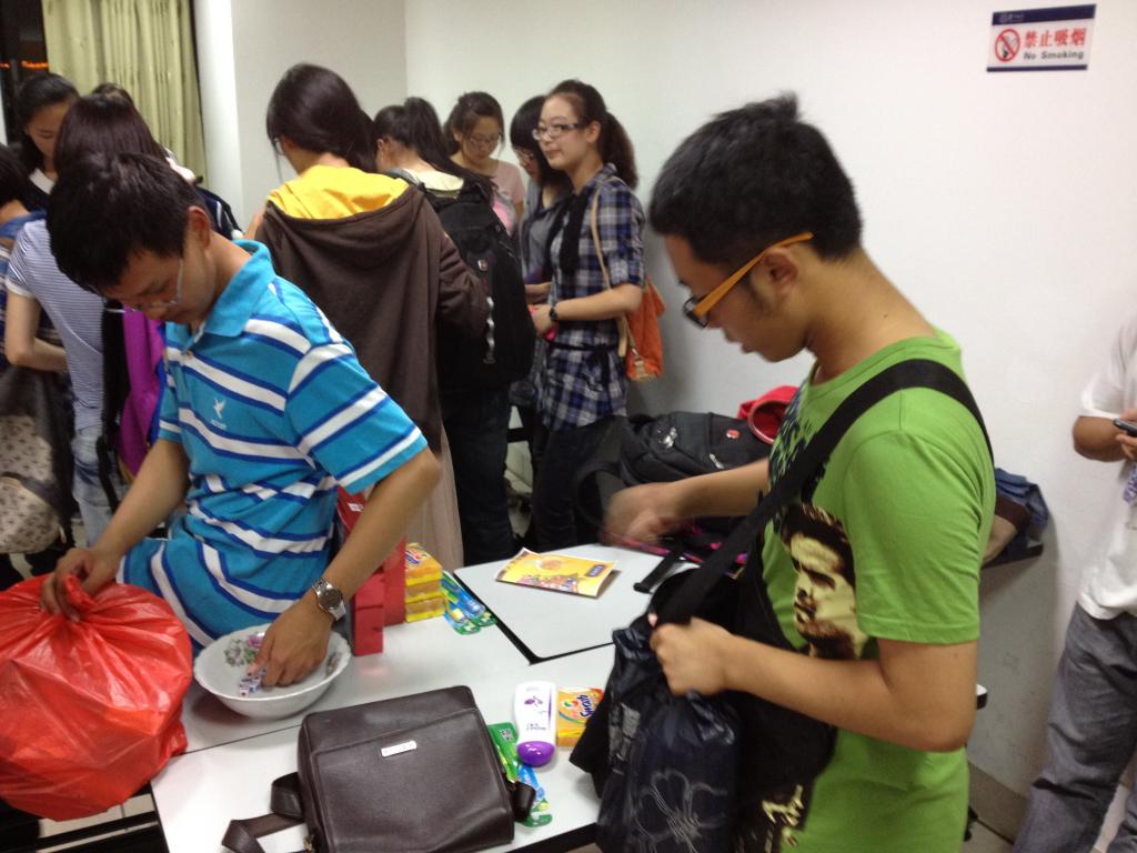 2012年10月12日晚,国际关系学院的四十多名大一新生,在学院团委的组织下,于颂恩楼1120室参加了新生博饼活动。