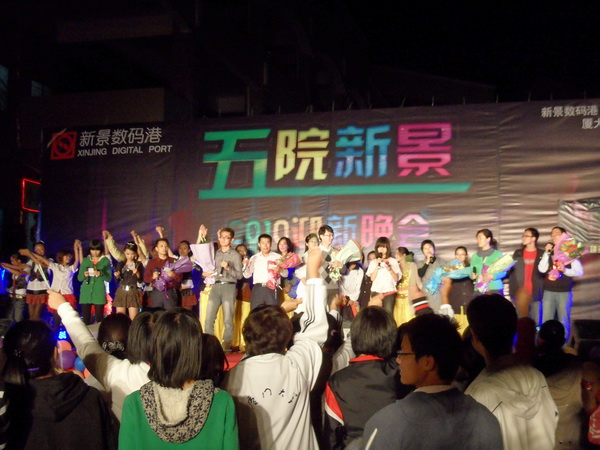 这是一场光与舞的饕餮盛宴,青春在今夜尽显风华,激情点燃了深秋之夜。2010年10月30日晚,由国际关系学院、建筑与土木工程学院、医学院、数学科学学院、材料学院联合主办,新景数码港赞助的五院新景迎新晚会在厦大漳校步行广场顺利举行并圆满落幕。我院党总支副书记黄俊清、团委书记郑碧娇出席了晚会,晚会现场气氛热烈温馨,台上异彩缤纷,台下欢呼不断。