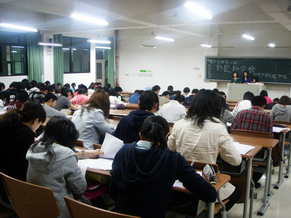 4月25日,国际关系学院第二届“我是外交官”外交知识大赛初赛在漳州校区顺利举行。初赛采取开卷答题的形式,时间为一小时,题量达一百多题,涉及外交知识的方方面面。比赛19点整准时开始,考场分别设在四号楼418和502教室。初赛应到75支队伍,实到60支,参赛选手来自不同的院系,可谓智者相聚一堂。这次比赛决出的前五名将角逐最后的决赛。在这一个小时的比赛时间里,选手们争分夺秒,或翻阅资料,或奋笔疾书,赛场气愤十分紧张。比赛结束后,有的选手信心满满,有的则喜忧参半。一位参赛选手在接受记者采访时说,“虽然进入决赛的希望不大,但是通过这些天的准备已经让他了解了很多外交知识,收获颇丰。希望这样学术性的比赛能够多多开展”。