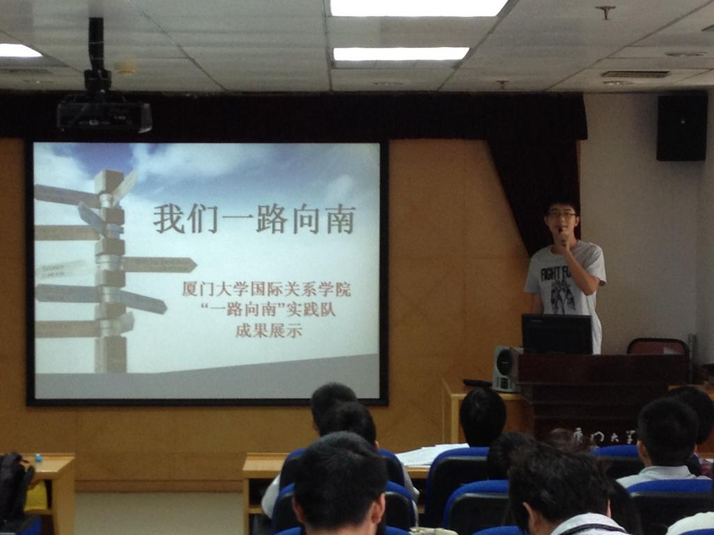 2012年10月19日上午10点,厦门大学国际关系学院/南洋研究院“国关一夏”2012年暑期社会实践报告会在厦门大学本部颂恩楼514会议室举行。报告会由院团委主办,党总支副书记黄俊清老师、团委书记沈丽秀老师和全院学生参加了此次报告会。
