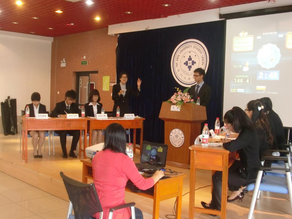 11月12日上午11点半左右,厦门大学“翰坊杯”辩论赛初赛第三场于自钦楼多功能厅结束,我院辩手张诗琦、刘静漪、许思政和唐嘉华取得了国关首场辩赛的胜利。