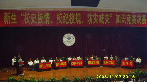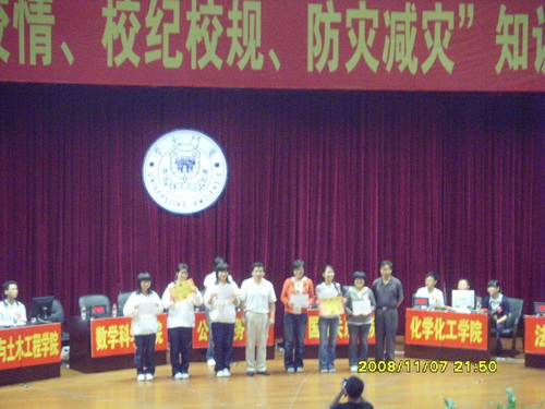 11月7日晚7点,由漳州校区团工委、漳州校区学生办主办,厦大青年漳州校区宣传中心承办的2008级新生“校史校情、校纪校规、防灾减灾”知识竞赛决赛在漳州校区主楼大报告厅举行。校长助理、漳州校区党工委书记、漳州校区管委会主任王巧萍,漳州校区学生办主任郑建华,漳州校区团工委书记张清榕,我院党委副书记黄俊清等领导以及各院系辅导员应邀出席本次比赛。