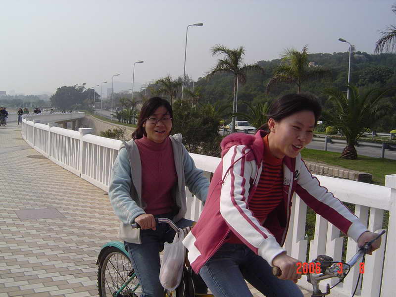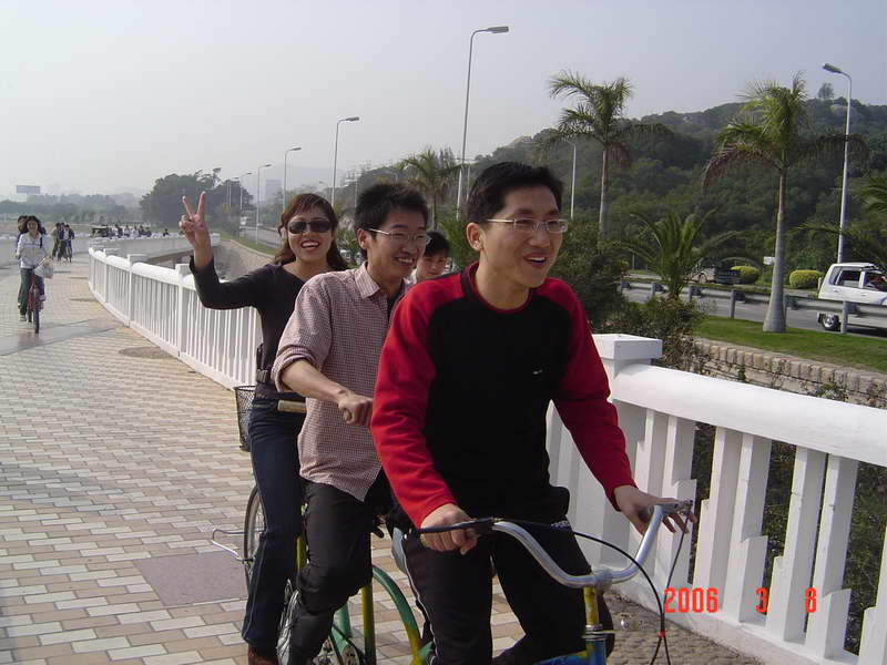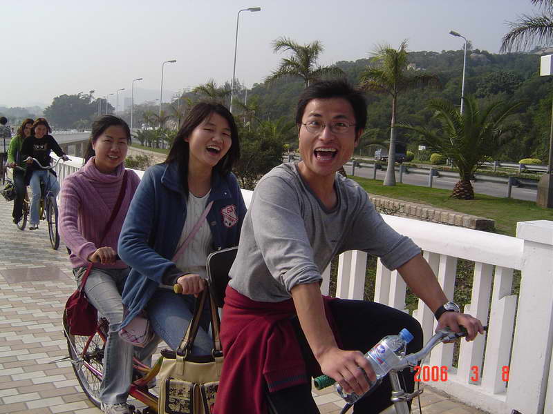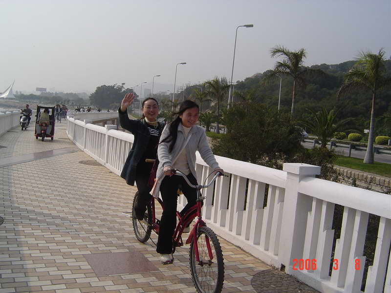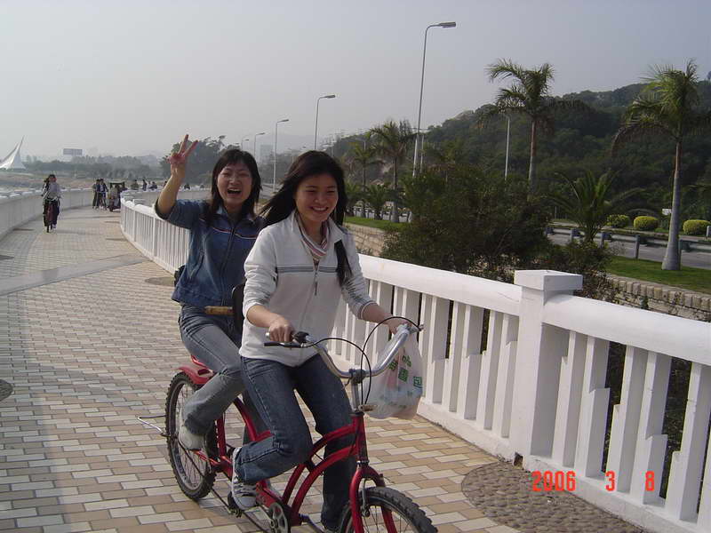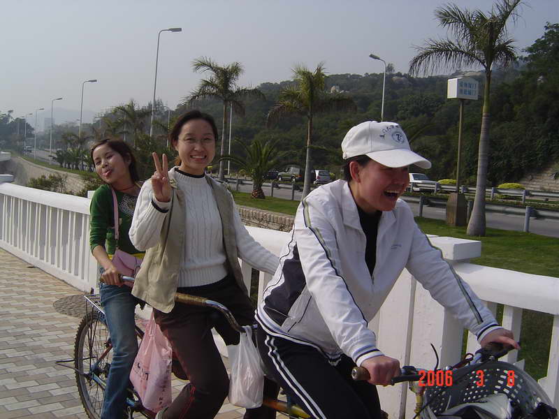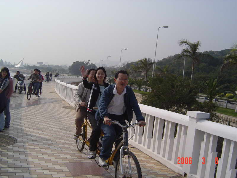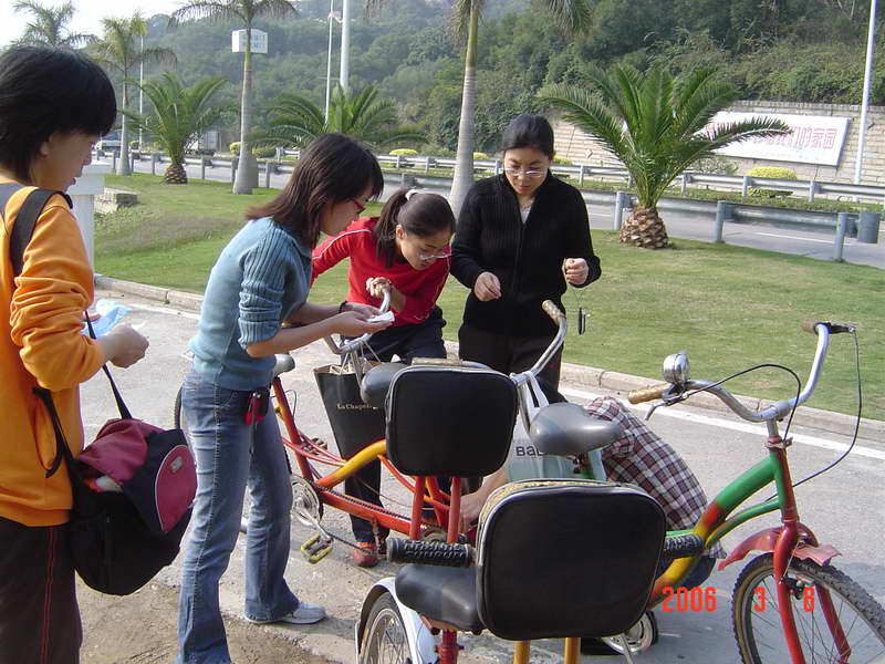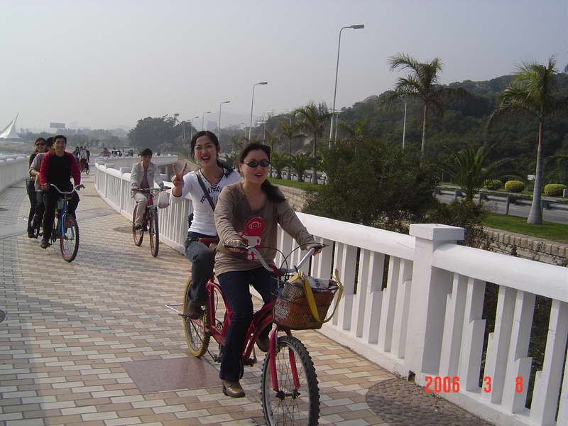 (本院讯/刘娟 图/赵海立)3月8日下午我院在环岛路组织师生进行了“骑车环岛游”活动,以此庆祝妇女节。此次活动面向全院师生,起点是珍珠湾,终点是椰风寨,大约下午3点左右正式出发,大家的心情也如三月的春光一般,一路上欢声笑语不断。到达终点时,大家的兴致并没有被路上的疲累损减,故而林梅书记和杨晓燕副书记决定在椰风寨那儿的游乐场自由活动二十分钟。在游乐场里我院学生不约而同的选择了碰碰车的游戏,在来回碰撞之间笑声、叫声不断,这时大家比以往任何时候都更深地感觉到我院是一个和谐、温暖的大家庭。在返回珍珠湾后,所有参加活动的师生在海韵园对面的草坪上拍了一张“全家福”。