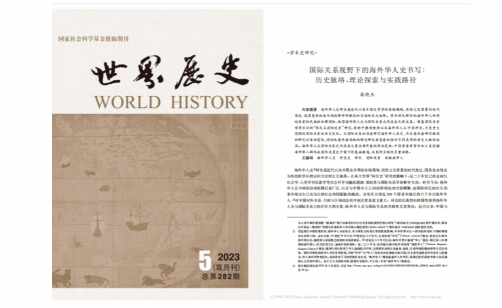 该篇论文被《中国社会科学文摘》(24年03期刊)《人大复印资料》(24年02期)《新华文摘(网络版)》(24年08 期)全文转载,着重梳理海外华人与国际关系、中国外交的交织脉络与历史烙印,以及借助“移民与国际关系”理论逻辑尝试拓展海外华人史研究的议题范围,并为如何运用多种史料进行历史书写提供案例分析。