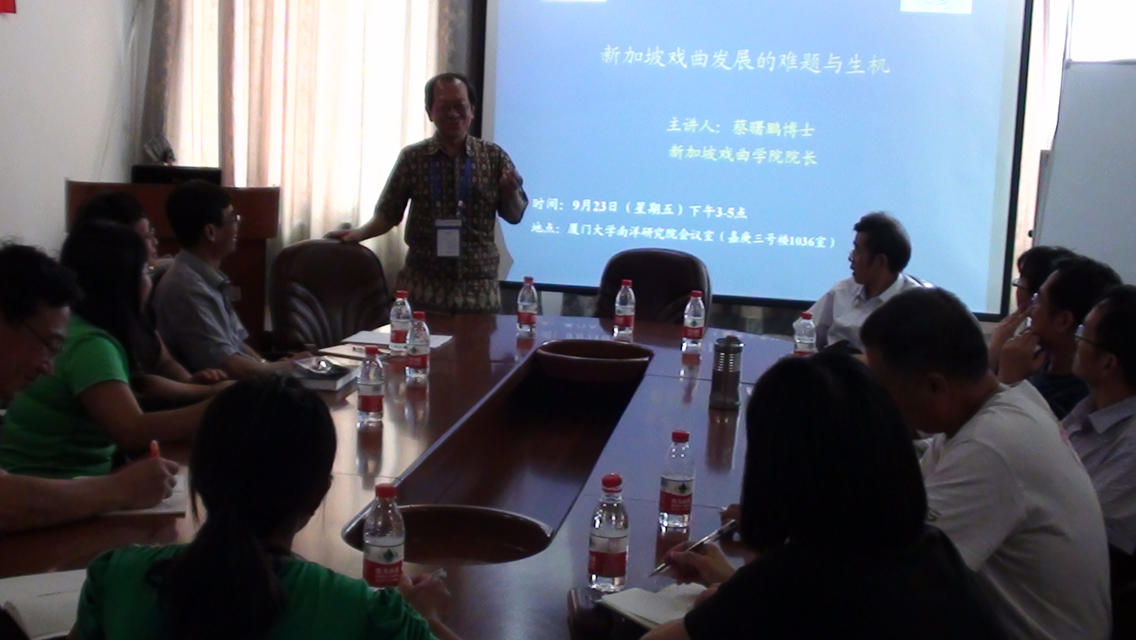 2011年9月23日下午,新加坡戏曲学院创院院长蔡曙鹏博士(1995—2010)应邀来访,为我院师生带来一场名为“新加坡戏曲发展的难题与生机”的座谈会。座谈会由我院聂德宁副院长主持。