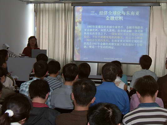 11月24日下午由我中心的沈红芳教授做了题为《经济全球化与东南亚经济发展》的第一场学术讲座,集知识性与学术性于一体,吸引了本院和其他院系的众多同学积极踊跃地到场听讲。沈教授主要介绍了在经济全球化的浪潮下,东南亚所创造的经济奇迹,遭遇到的金融危机,随后进行的经济发展战略的政策调整,有成功的经验亦有失败的教训,以及对我国今后经济发展,深化改革的启示与借鉴。沈教授以其严谨治学态度,精彩的研究内容,赢得了同学们的阵阵掌声,使同学们对东南亚经济发展有更深刻的认识与了解,进一步开阔了同学们的观察视野和研究思路,让同学们收益匪浅。