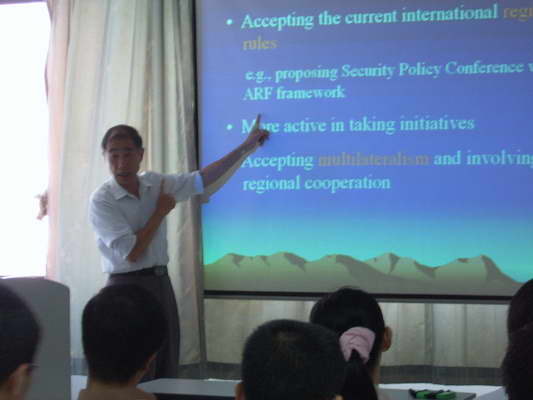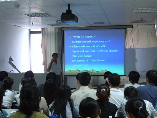11月9日下午,东南亚研究中心/南洋研究院系列讲座——导师论坛第二场开讲。东南亚研究中心副主任、世界经济学教授、博士生导师廖少廉老师就中国的新外交及其周边国家的前沿问题进行了深入简出的探讨。演讲内容分为三个部分:中国新外交、中国新外交与新地区主义和中国与周边国家的关系。廖教授主要以东南亚国家为例,结合自身在外交第一线上战斗多年的丰富经历和心得,生动的描述了一幅中国新外交的生动景象,并就许多“书上没有的”、“老师没有讲过的”甚至是“现在还没发生而将要发生的”的一系列中国外交前瞻性的问题进行了深刻的探讨。在理想与现实、国家利益和世界和平发展的思辨中,廖教授展示了当代中国外交战士不畏难不自闭的改革精神,以及一个专家学者所特有的严谨和高瞻远瞩的战略眼光。许多同学是在教室门外 “听”完了整场讲座,两个多小时的思想盛宴和外交第一线的外交战斗经验,令同学们犹感意犹未尽,其间不断闪现的新思路、新课题都让同学们获益匪浅。在更深的层次上,通过这次讲座,师生之间有了更多的沟通,同学们体会到了中国在开放和发展中的艰辛以及取得外交胜利时刻的无尽喜悦,这样的讲座,相信南洋研究院会有更多。