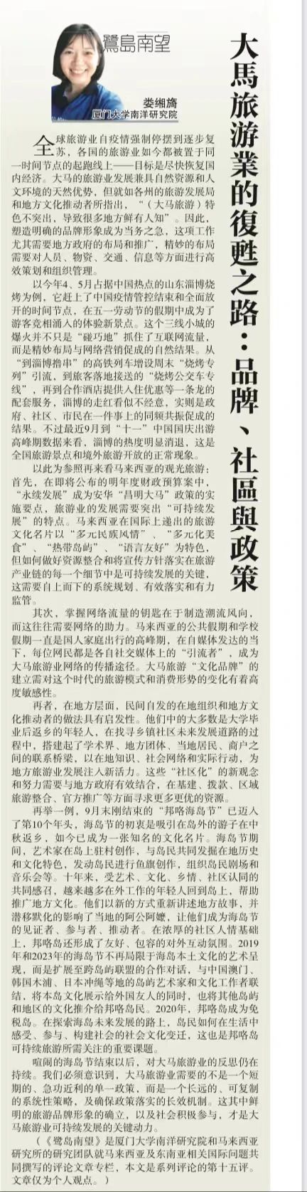 喧闹的海岛节结束以后,对大马旅游业的反思仍在持续。我们必须意识到,大马旅游业需要的不是一个短期的、急功近利的单一政策,而是一个长远的、可复制的系统性策略,及确保政策落实的长效机制。这其中鲜明的旅游品牌形象的确立,以及社会积极参与,才是大马旅游业可持续发展的关键动力。