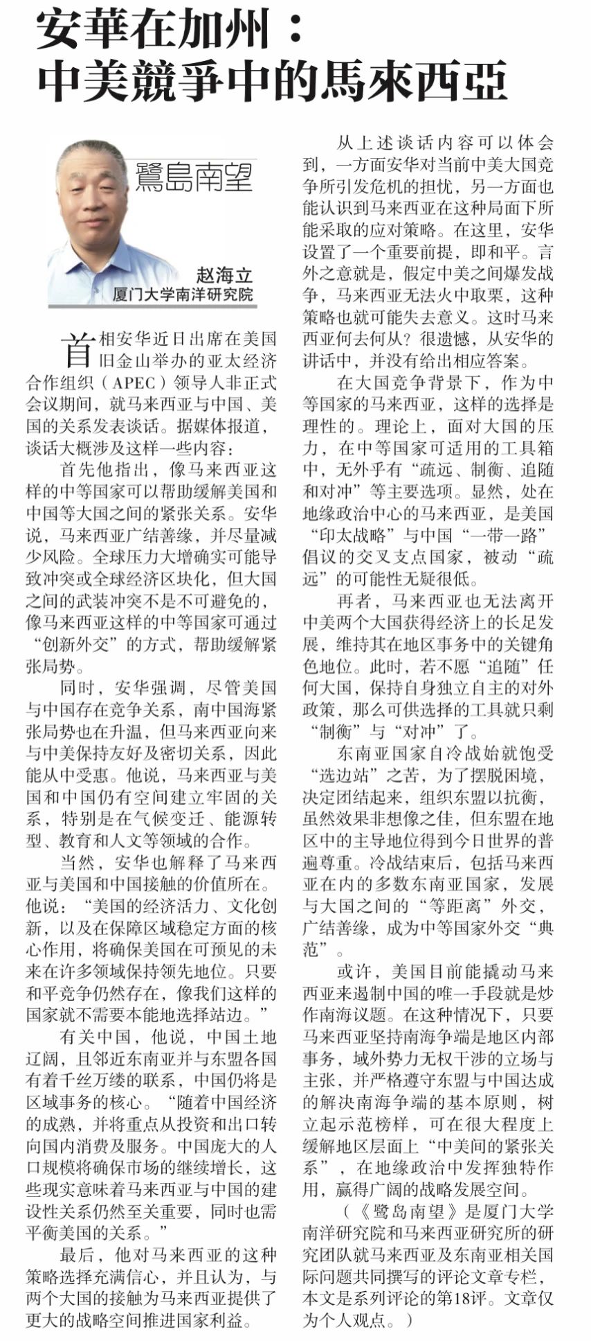 (《鹭岛南望》是厦门大学南洋研究院和马来西亚研究所的研究团队就马来西亚及东南亚相关国际问题共同撰写的评论文章专栏,本文是系列评论的第18评。文章仅为个人观点。)