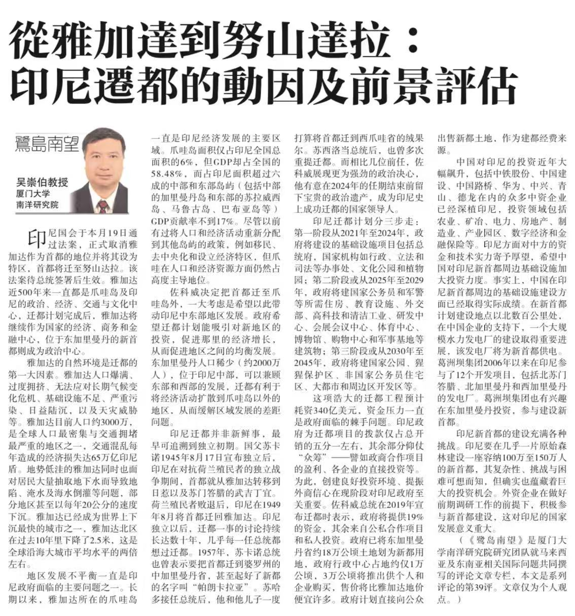 从雅加达到努山塔拉:印尼迁都的动因及前景评估