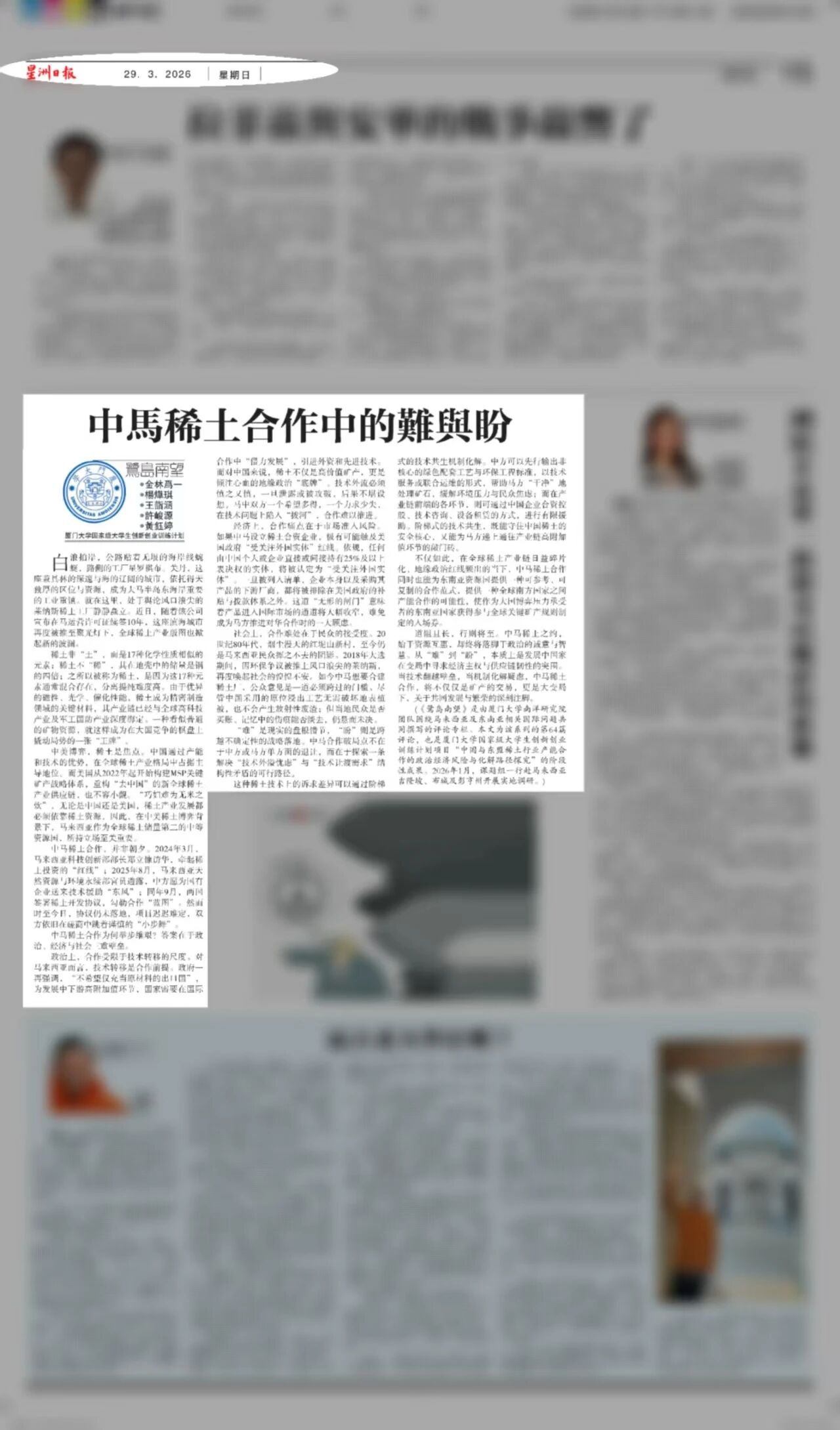 (《鹭岛南望》是由厦门大学南洋研究院团队围绕马来西亚及东南亚相关国际问题共同撰写的评论专栏。本文为该系列的第64篇评论,也是厦门大学国家级大学生创新创业训练计划项目“中国与东盟稀土行业产能合作的政治经济风险与化解路径探究”的阶段性成果。2026年1月,课题组一行赴马来西亚吉隆坡、布城及彭亨州开展实地调研。)