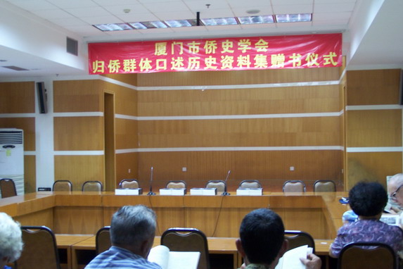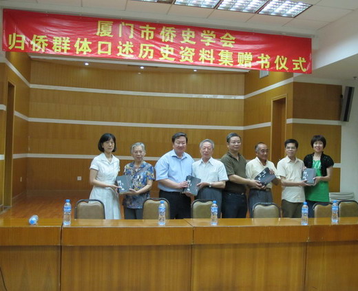 2010年6月30日上午,数十位白发归侨、市侨务工作者和主要高校、研究机构图书馆代表云集白鹭洲路团结大厦,见证了厦门市侨史学会归侨群体口述历史资料集赠书仪式。