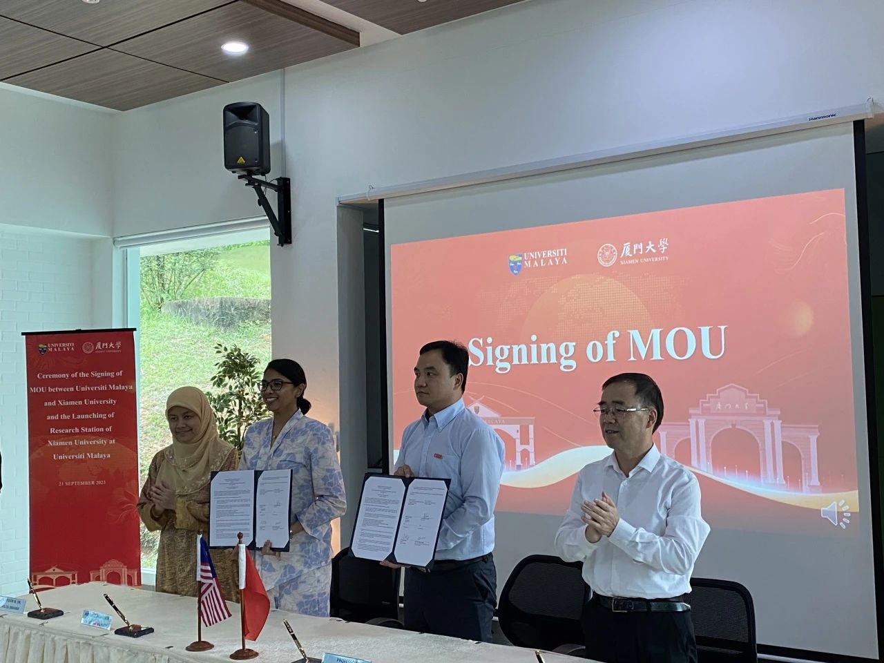 9月21日,我院与马来亚大学人文与社会科学学院合作签署仪式暨厦门大国际关系学院/南洋研究院马来西亚工作站揭牌仪式,在吉隆坡马来亚大学隆重举行。马来西亚国际贸易及工业部副部长刘镇东、厦门大学校长张宗益教授、马来亚大学副校长莎莉娜教授、厦门大学马来西亚分校校长王瑞芳教授、厦门大学国际关系学院/南洋研究院副院长(主持工作)高艳杰教授等专家学者及政府官员出席仪式并见证签约。此工作站将成为中国高校在东南亚国家成立的第一个区域(国别)研究工作站点,今后也将成为两国开展学术交流和中外文化对话交流的重要窗口。