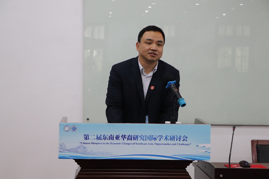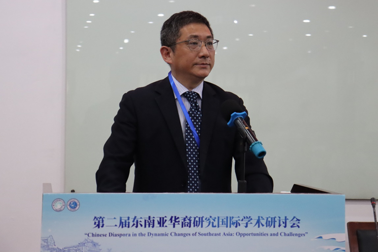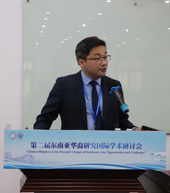 厦门大学国际关系学院/南洋研究院院长高艳杰教授代表学院致欢迎辞,他表示,厦门大学国际关系学院/南洋研究院因侨而立、由侨而兴,在华侨华人研究方面拥有丰富的历史底蕴和学术传统。新时代给华侨华人社群带来了一系列的机遇和挑战,高院长表达了对本次会议的期待,他希望通过这场开放、多元、深入的思想交流为华侨华人在新时代中的发展出谋划策,为华侨华人更好地融入东南亚当地社会作出积极贡献。