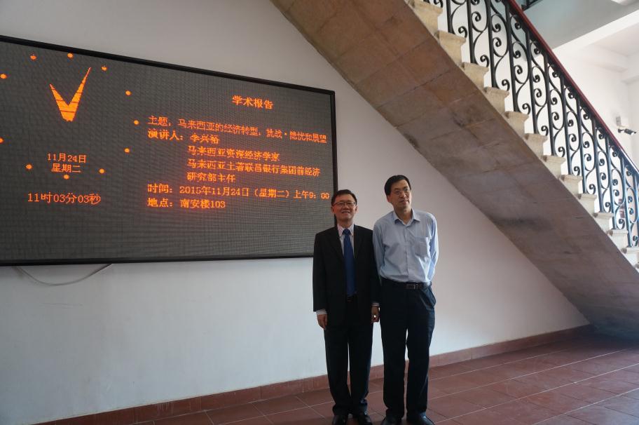 2015年11月24日,马来西亚的资深经济学家、马来西亚土著联昌银行集团前经济研究部主任李兴裕先生为厦门大学南洋学子与老师带来一场精彩的学术报告。本次报告的主题是:马来西亚的经济展望——挑战、隐忧和展望。