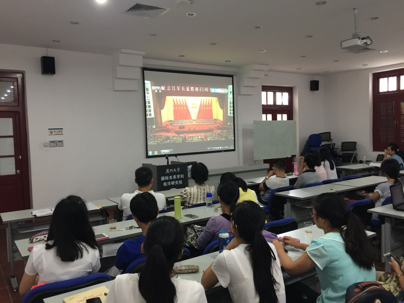 2016年10月21日上午,纪念红军长征胜利80周年大会在北京隆重召开,中共中央总书记、国家主席、中央军委主席习近平在会上发表重要讲话。上午10时,我院组织全体师生党员在南安楼102教室观看大会实况。院党委书记范丽、副书记黄俊清、院团委书记沈丽秀等均到场观看直播。